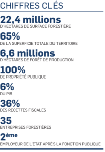 La République du Congo possède une couverture forestière évaluée à 22,4 millions d’hectares, ce qui représente 65% de la superficie totale du territoire, dont 14,67 millions d’hectares sont attribués sous forme de concession forestière (DGF, 2020). Il y a une potentialité d’environ 300 espèces d’arbre, mais seulement une cinquantaine font l’objet d’une exploitation et d’une transformation commerciale. 71 000 hectares sont constitués de forêts de plantation avec une forte dynamique ces dernières années et l’avènement de projets de plantations industriels.